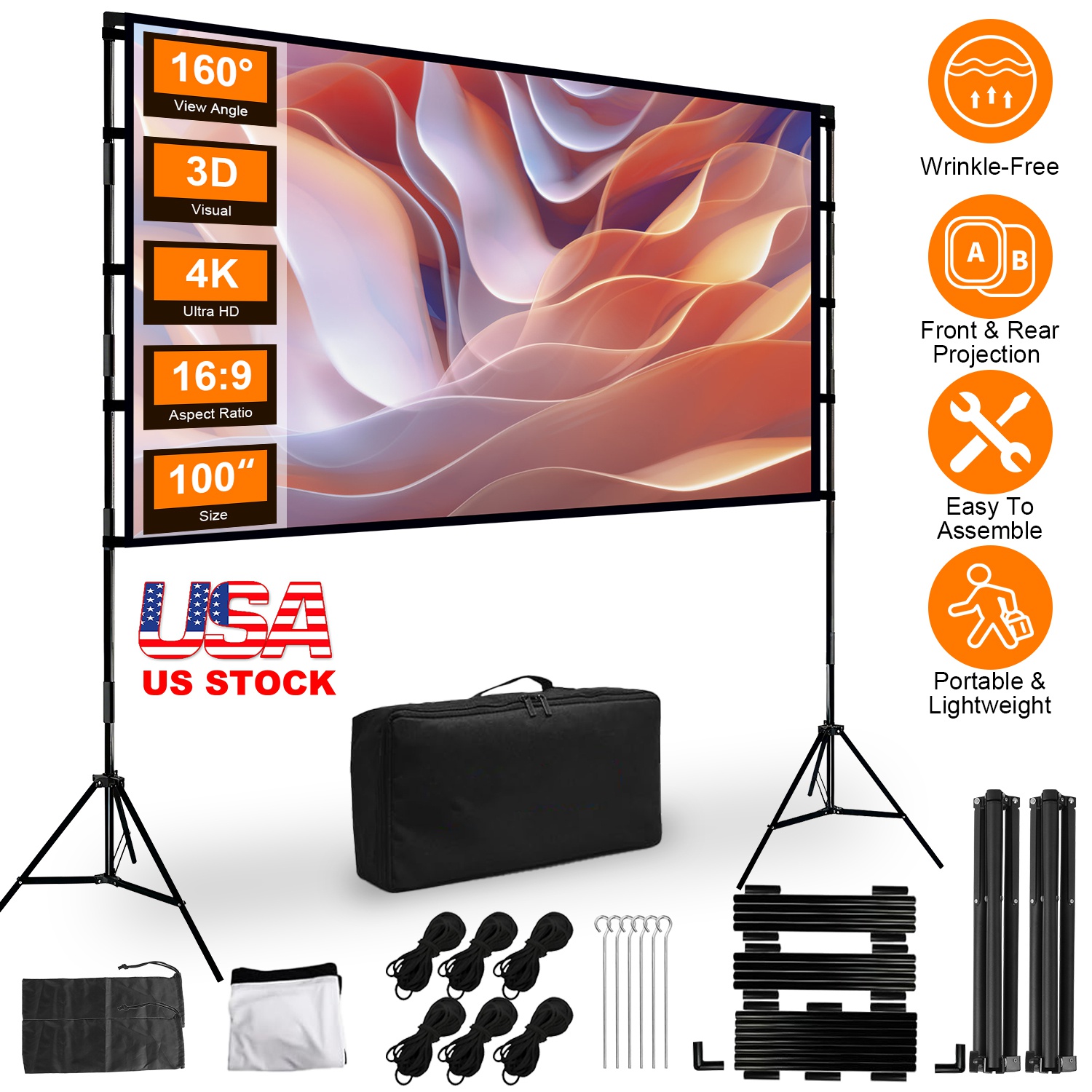 Home > 100inch Projector Screen with Stand 16:9 4K HD Rear Front Wrinkle-Free Portable And Foldable Movie Screen with Carry Bag For Indoor Outdoor Home Theat