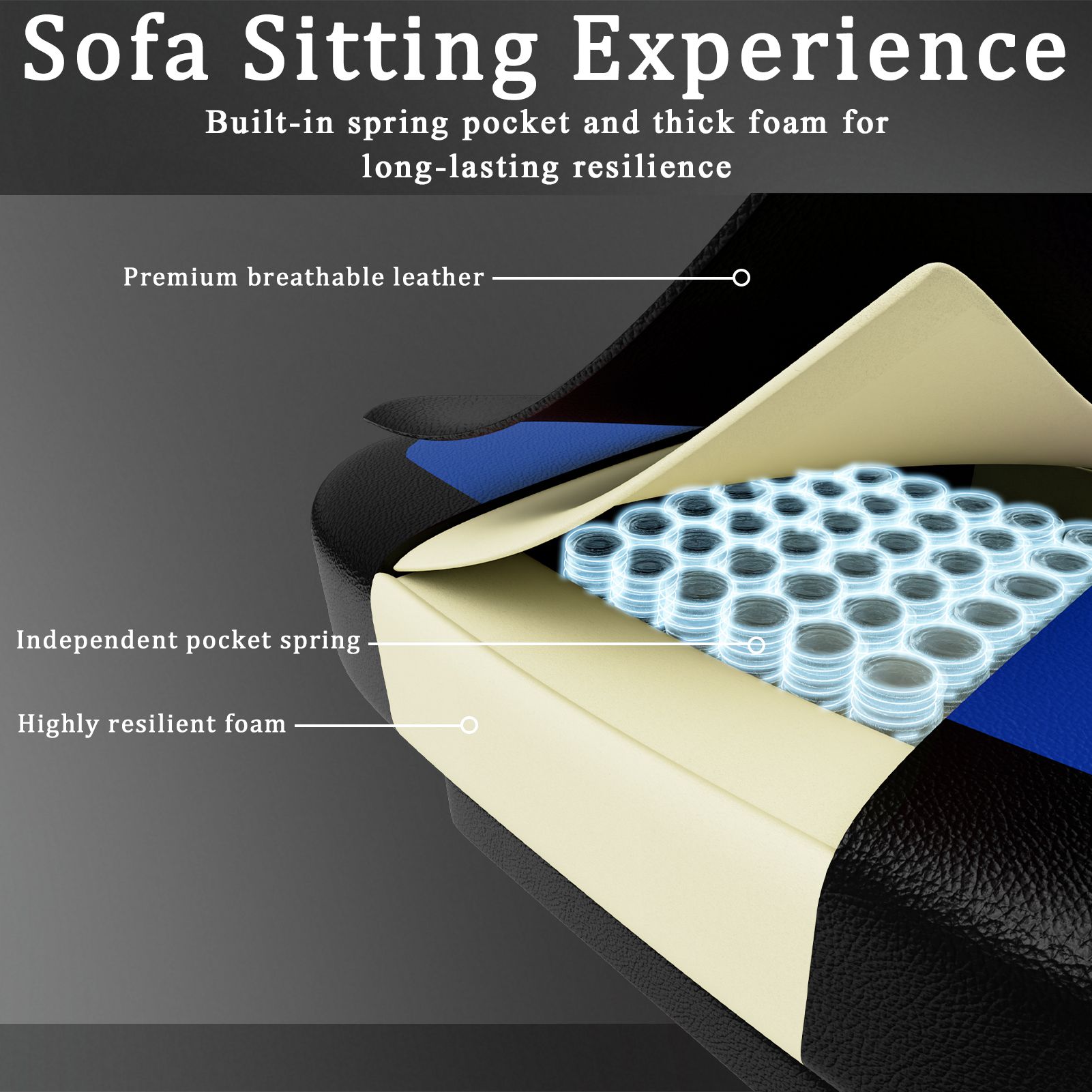 1.Premium Pocketed Springs For Sofa-Like Comfort: Our gamer chair features the same individual pocketed springs as a luxury sofa, with high-density resilient foam that won't sag even after extended use. The wingless seat design eliminates pressure on your thighs, while the breathable, skin-friendly PU leather keeps you warm in winter and cool in summer. Say goodbye to numb legs and sweaty backs! No more squirming in your seat!