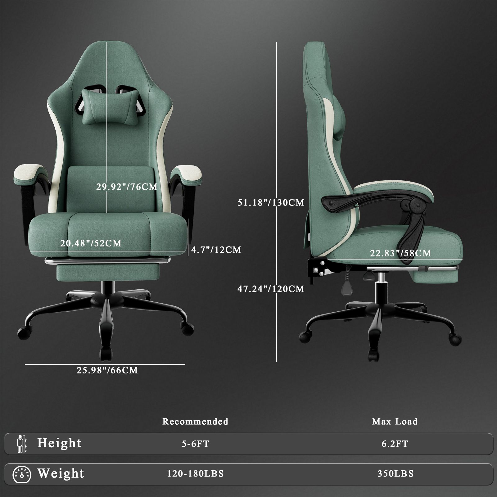 Home > Ergonomic Gaming Chair with Pocketed Spring Cushion, Breathable Fabric Computer Chair with Footrest