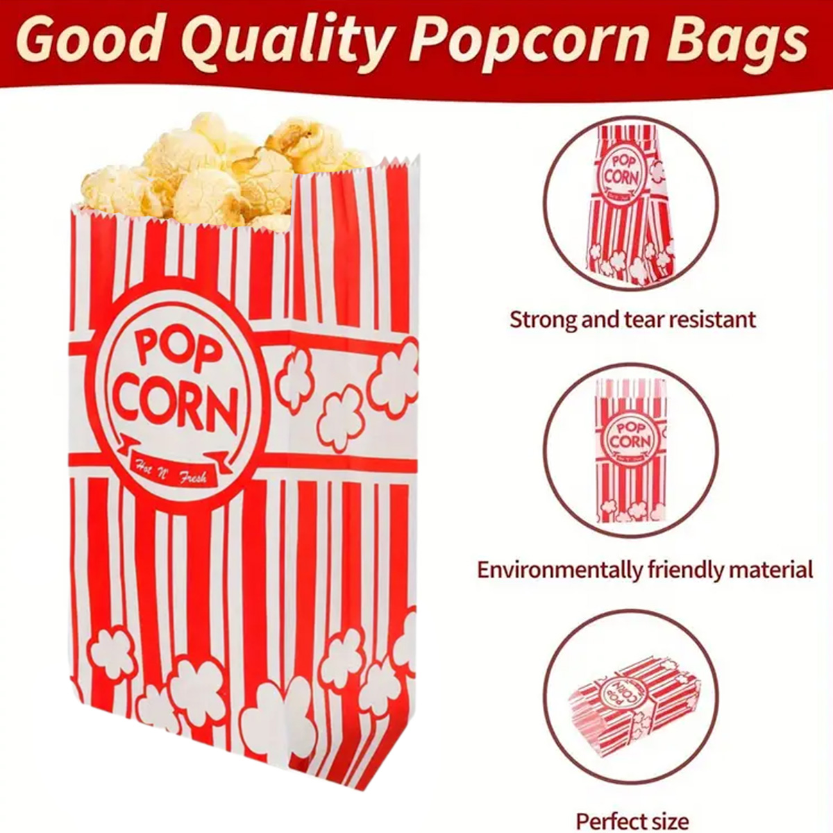 50 Pcs Popcorn Bags Individual Servings Red And White Stripes Paper Popcorn Food Bags