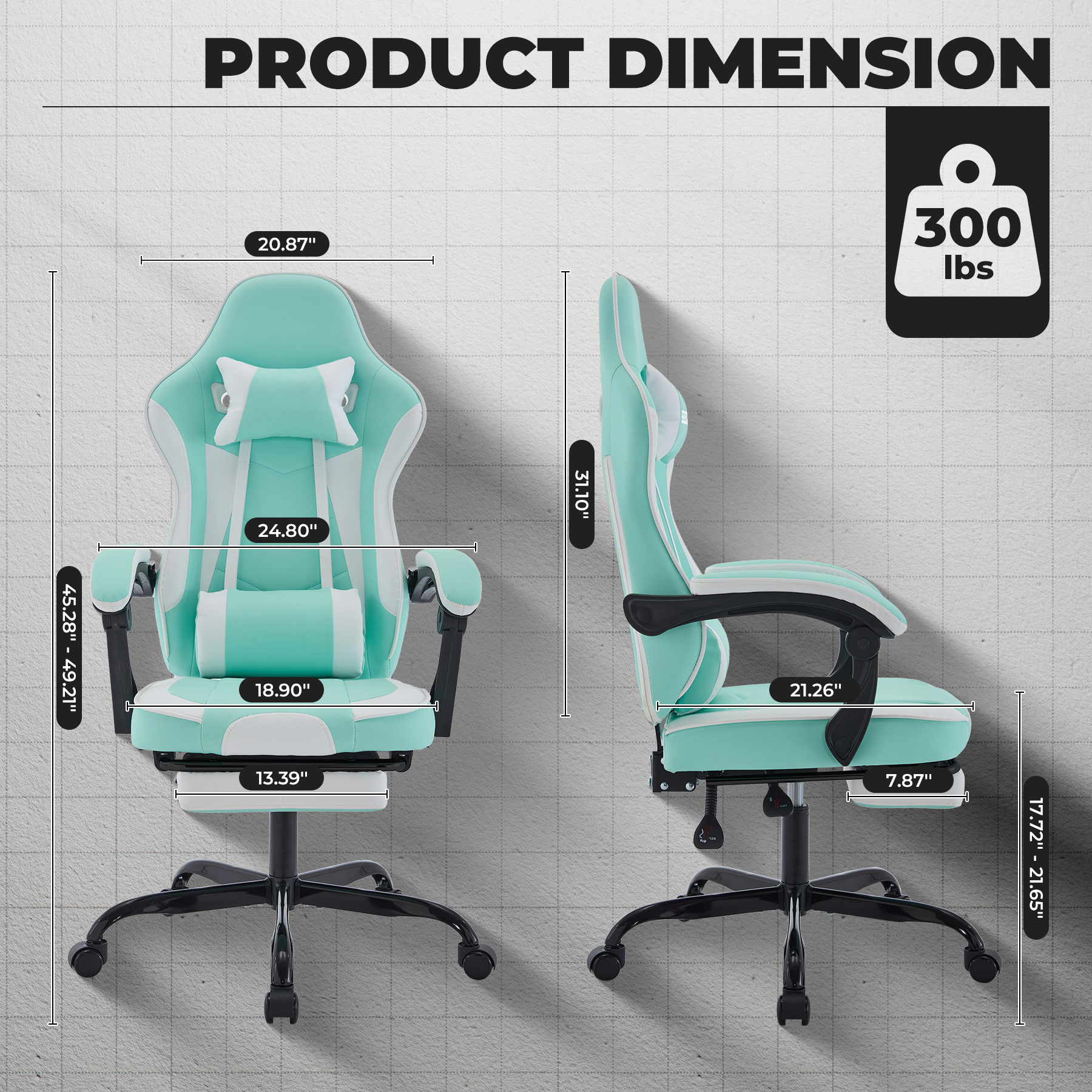 Product Name:Gaming Chair, Ergonomic Computer Chair with Footrest and Massage Lumbar Support, Height Adjustable Swivel Video Game Chair for Adults, 300lb Max, Green