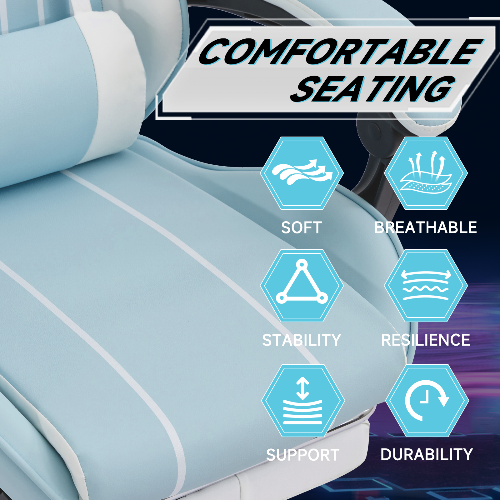 Gaming Chair, Computer Chair Ergonomic Chair With Footrest Office Chair Ergonomic Computer Chair With Lumbar Backrest Bluewhite
