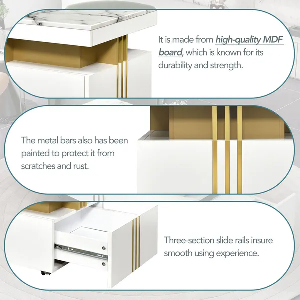 This coffee table is an upgrade of modern elegance, with its faux marble tabletop that offers a sleek surface for displaying decor and serving drinks.