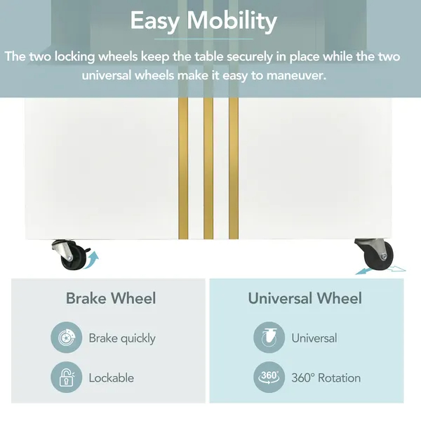 One of the most convenient features is the caster wheels on the bottom, which allow you to easily move the table.