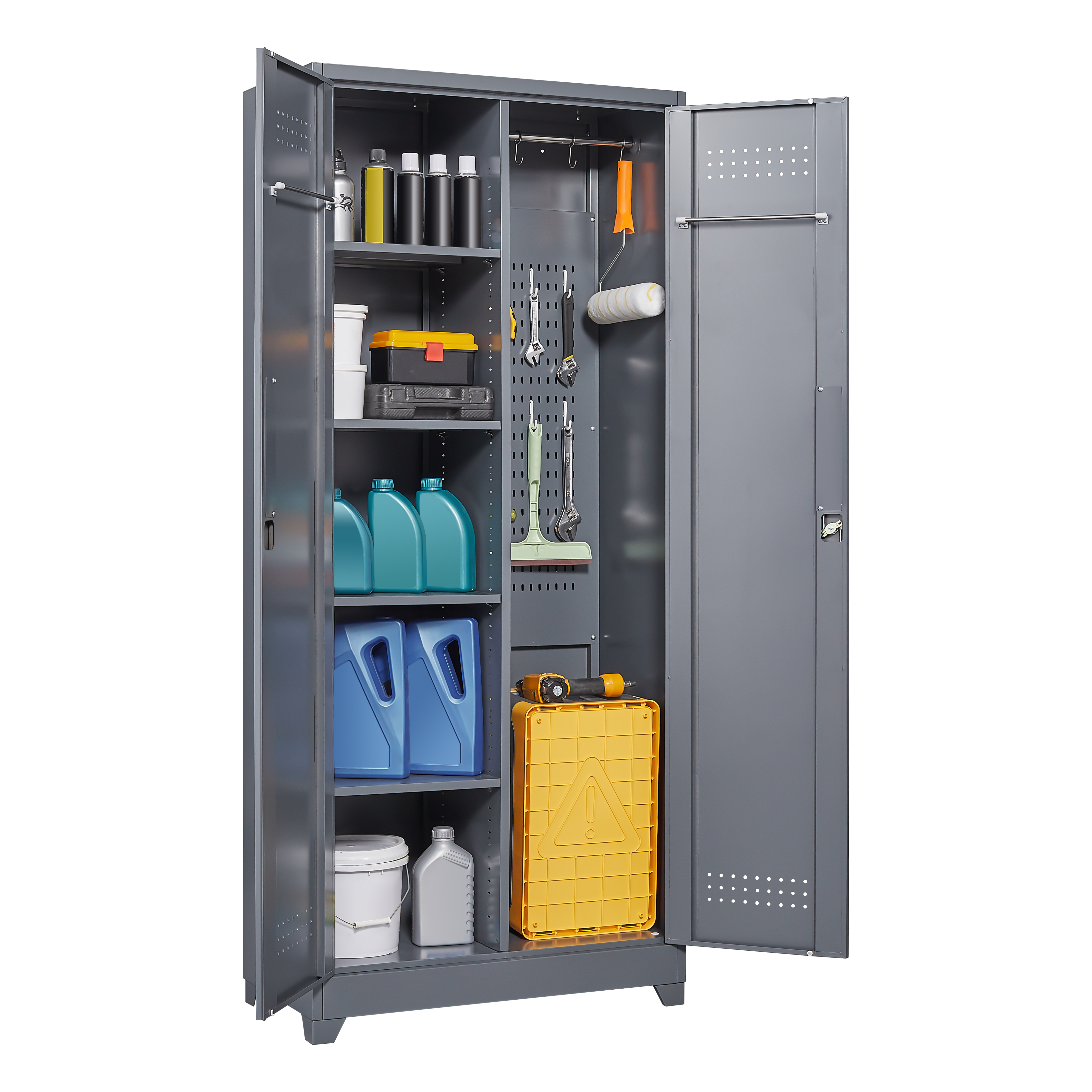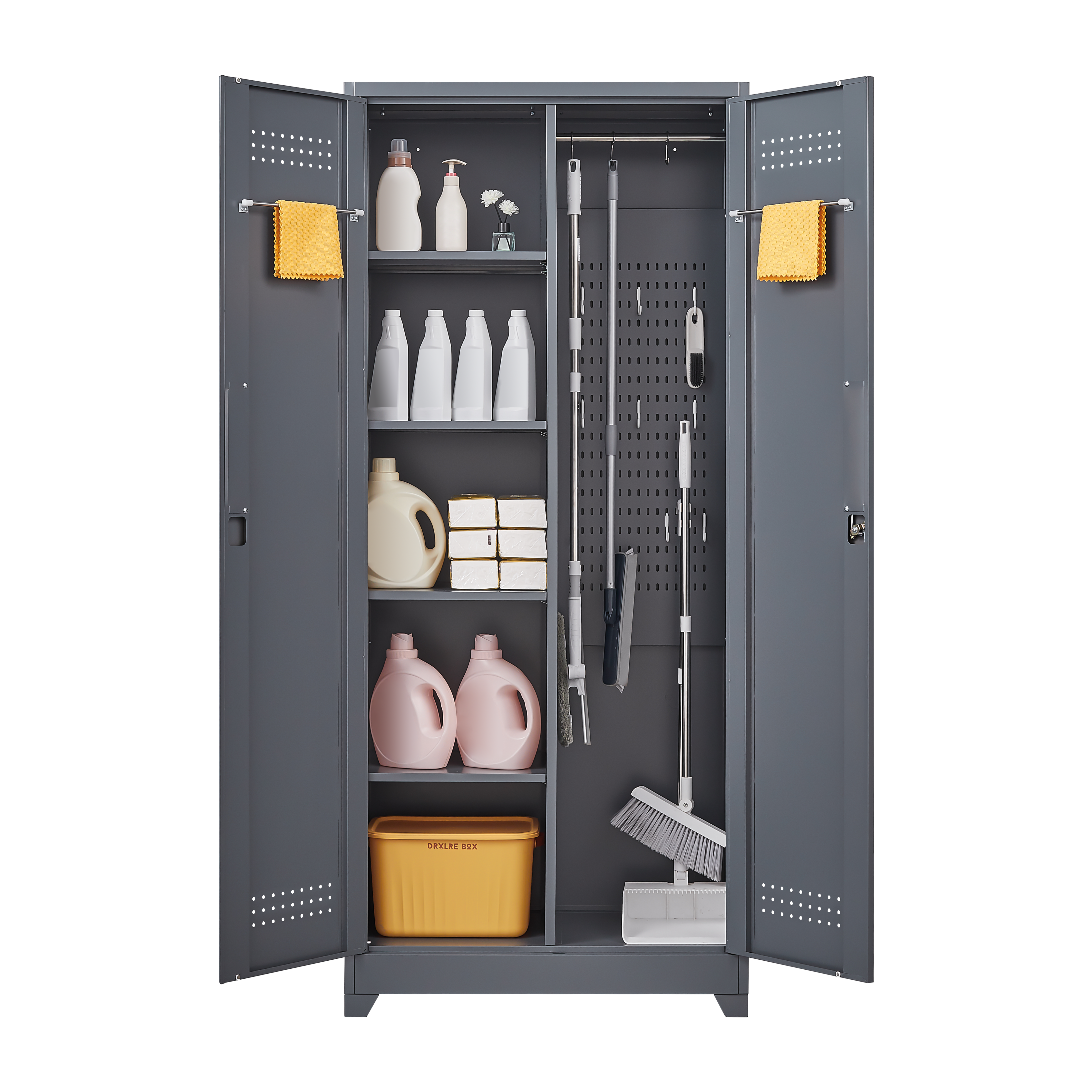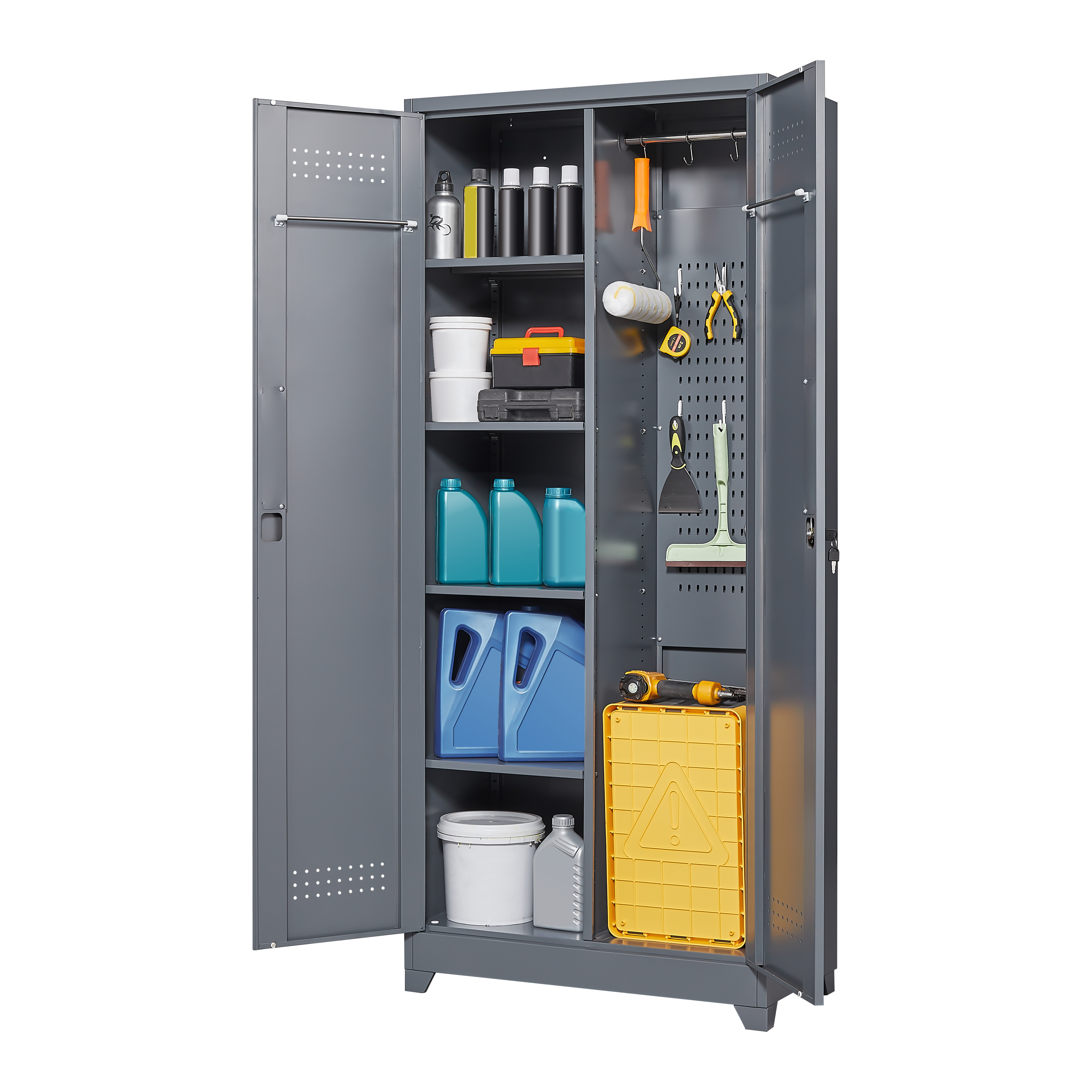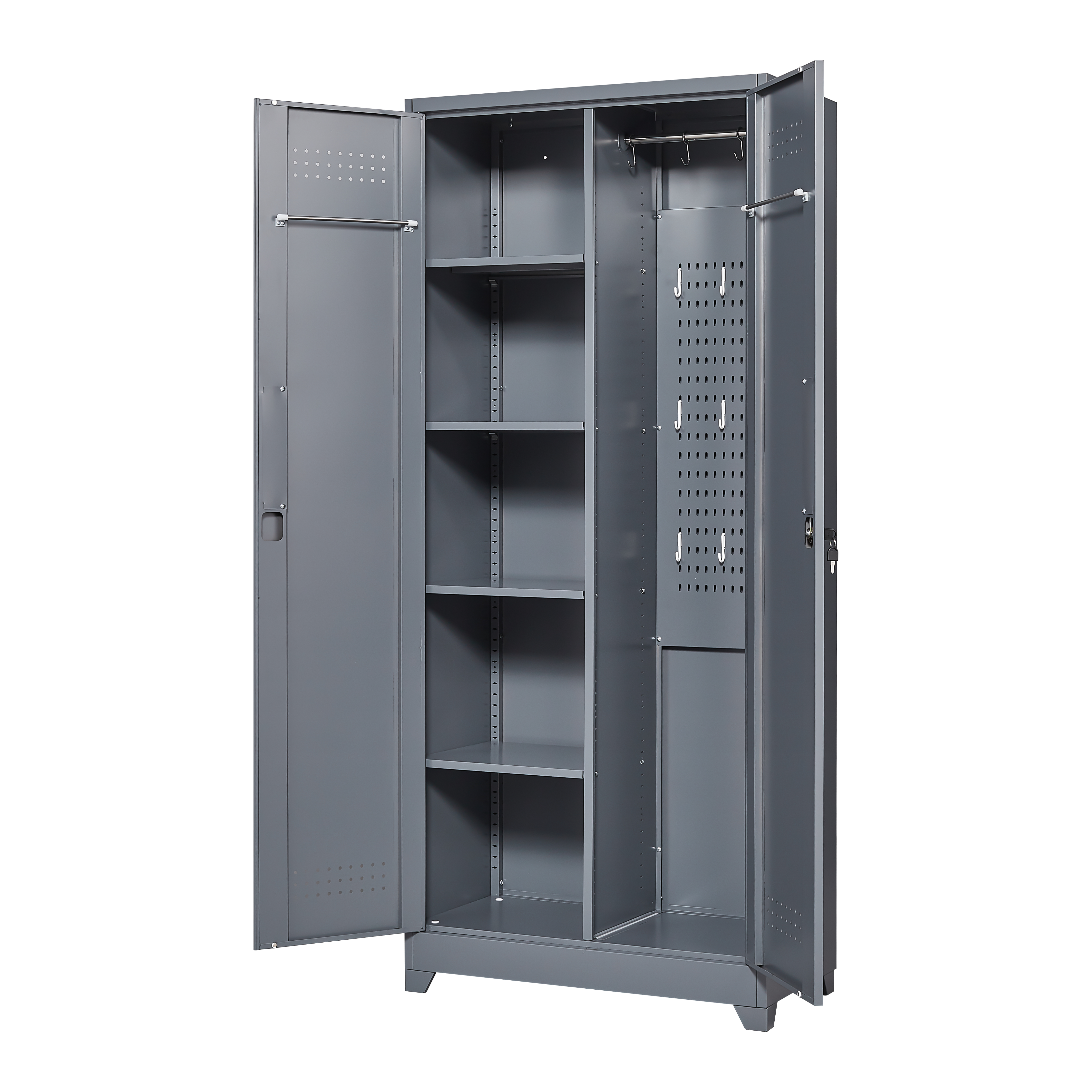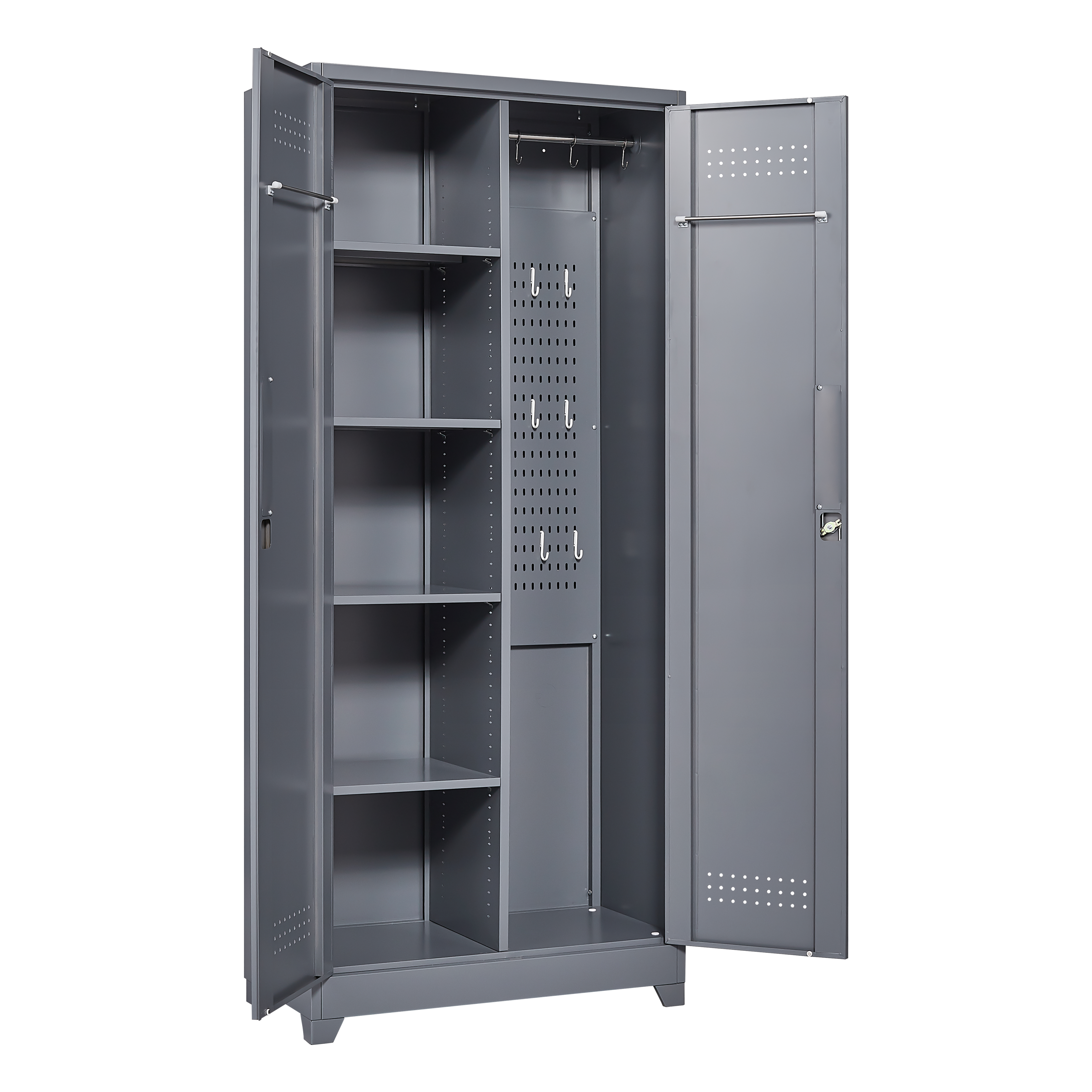 Home > Gray And White Color Metal Lockers, Cleaning Tool Cabinets With Locking Doors, High Broom Tool Storage Cabinets, Adjustable Shelves, Large Cabinets Fo