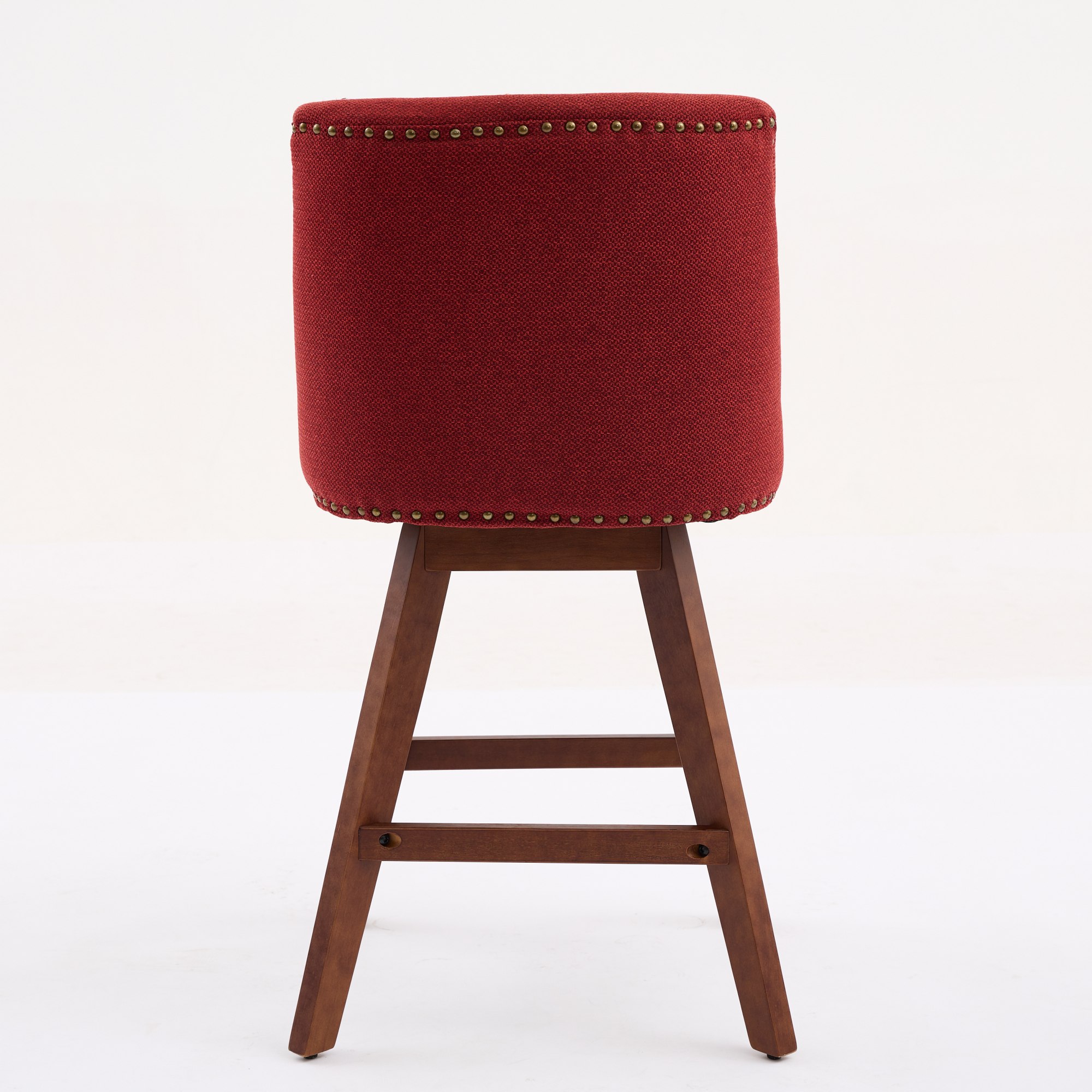 Counter Height Swivel Barstools, 26'' H Seat Height Upholstered Bar Stools Set Of 2, Fabric In Wine Red