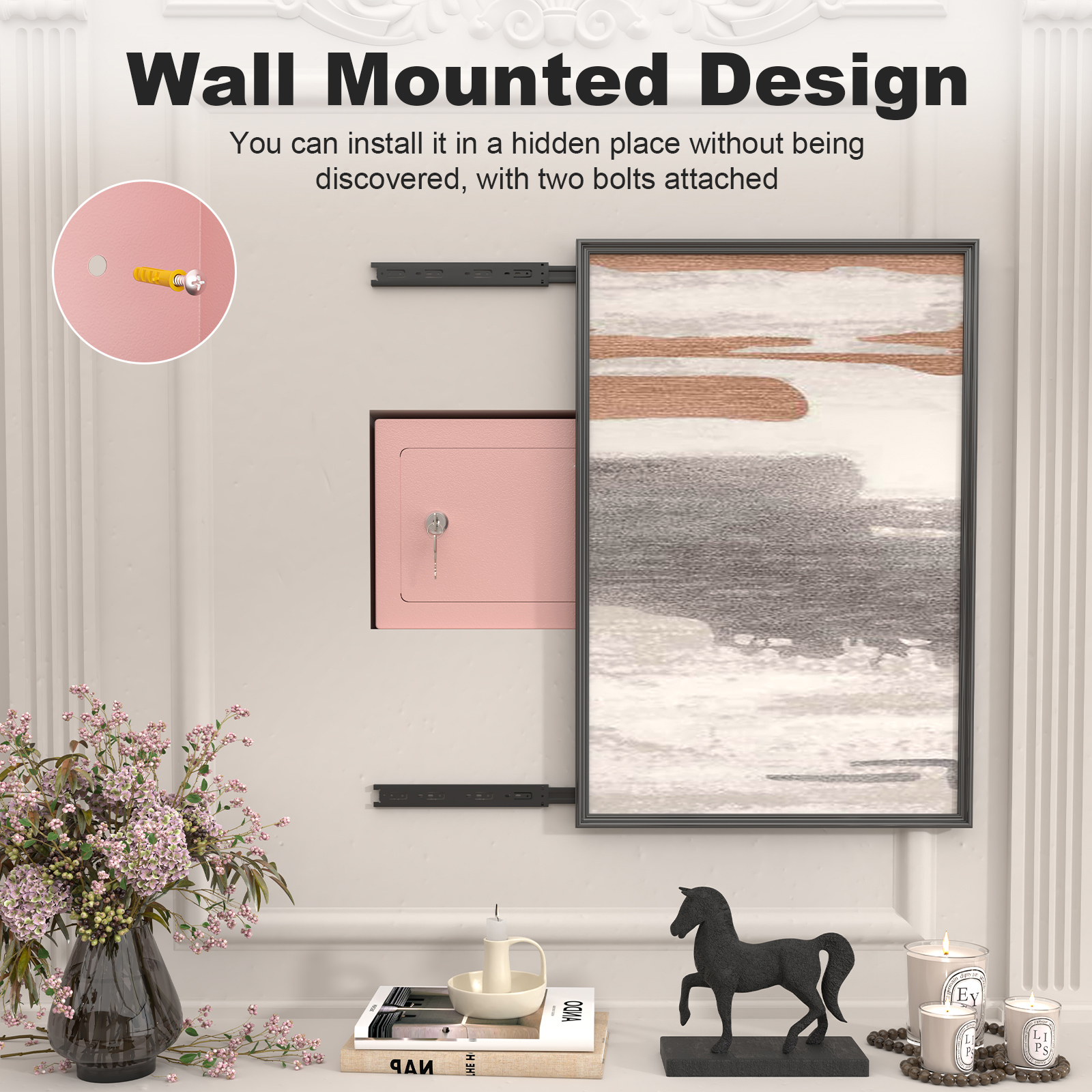 • With strong concealment, this safe can be either placed on a desk or mounted on a wall. Its small size allows it to be easily hidden among furniture or other items, making it difficult to detect and further enhancing anti-theft capabilities.