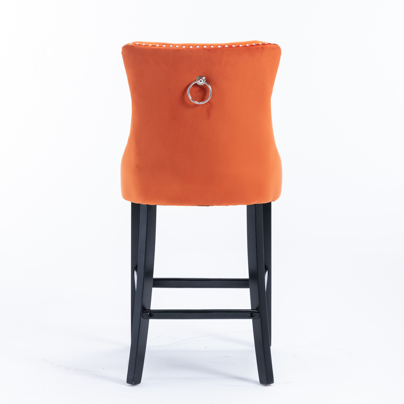 Product Name:Contemporary Velvet Upholstered Barstools with Button Tufted Decoration and Wooden Legs, and Chrome Nailhead Trim, Leisure Style Bar Chairs,Bar stools, Set of 2 (Orange),SW2002OG