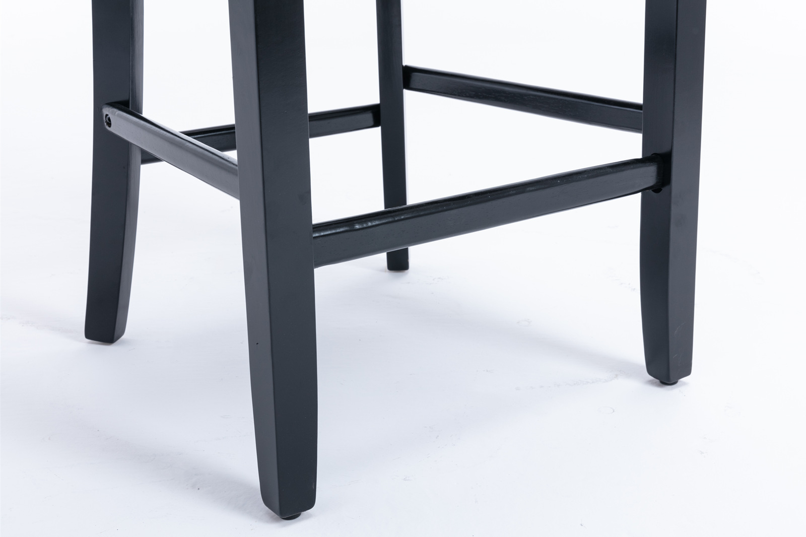 • The bar chair's frame and legs are made of solid wood with enough security to hold up to 300 pounds. Please use the instructions and assembly tool inside the package to complete the assembly. Adjustable pegs on the legs allow you to adjust the height of the legs.
