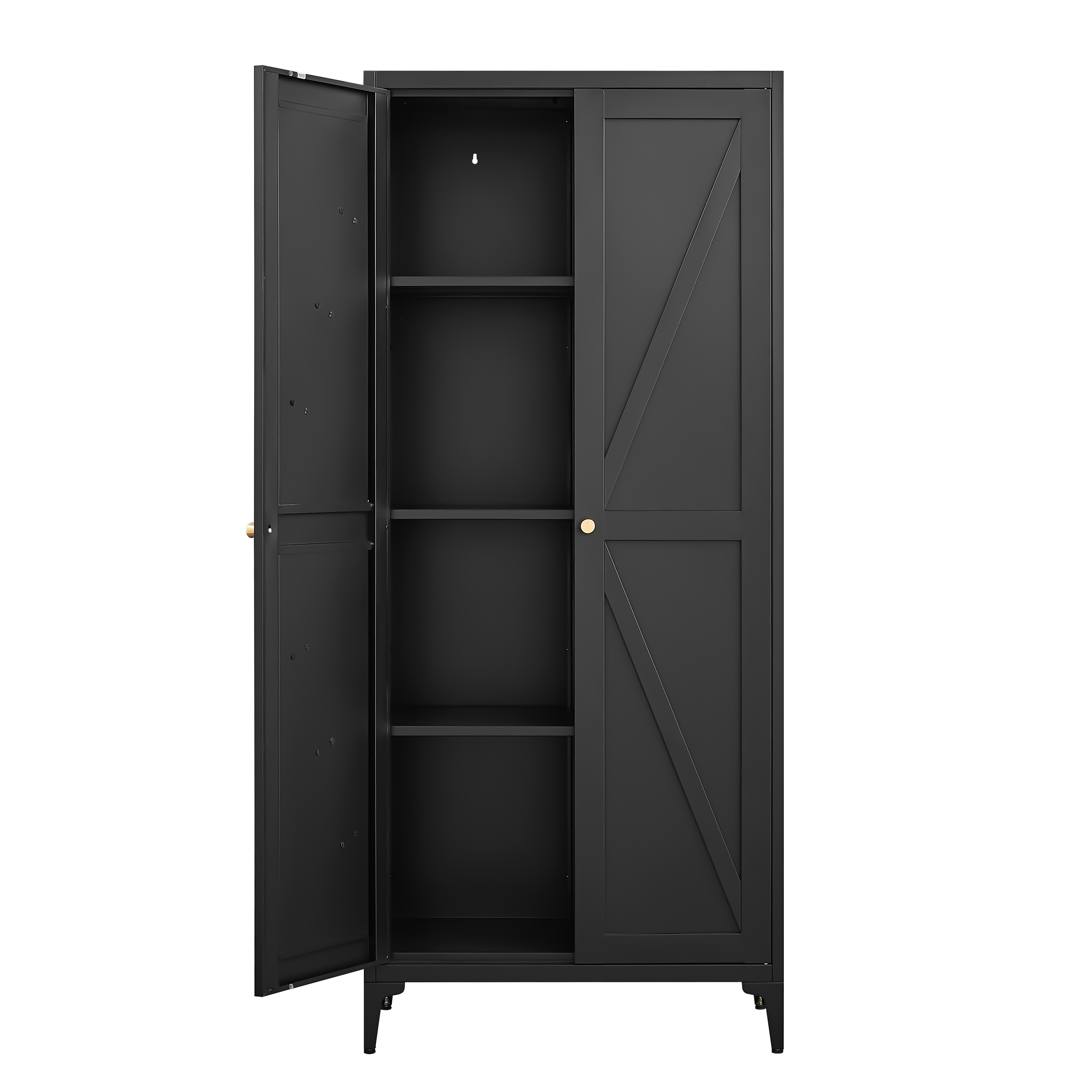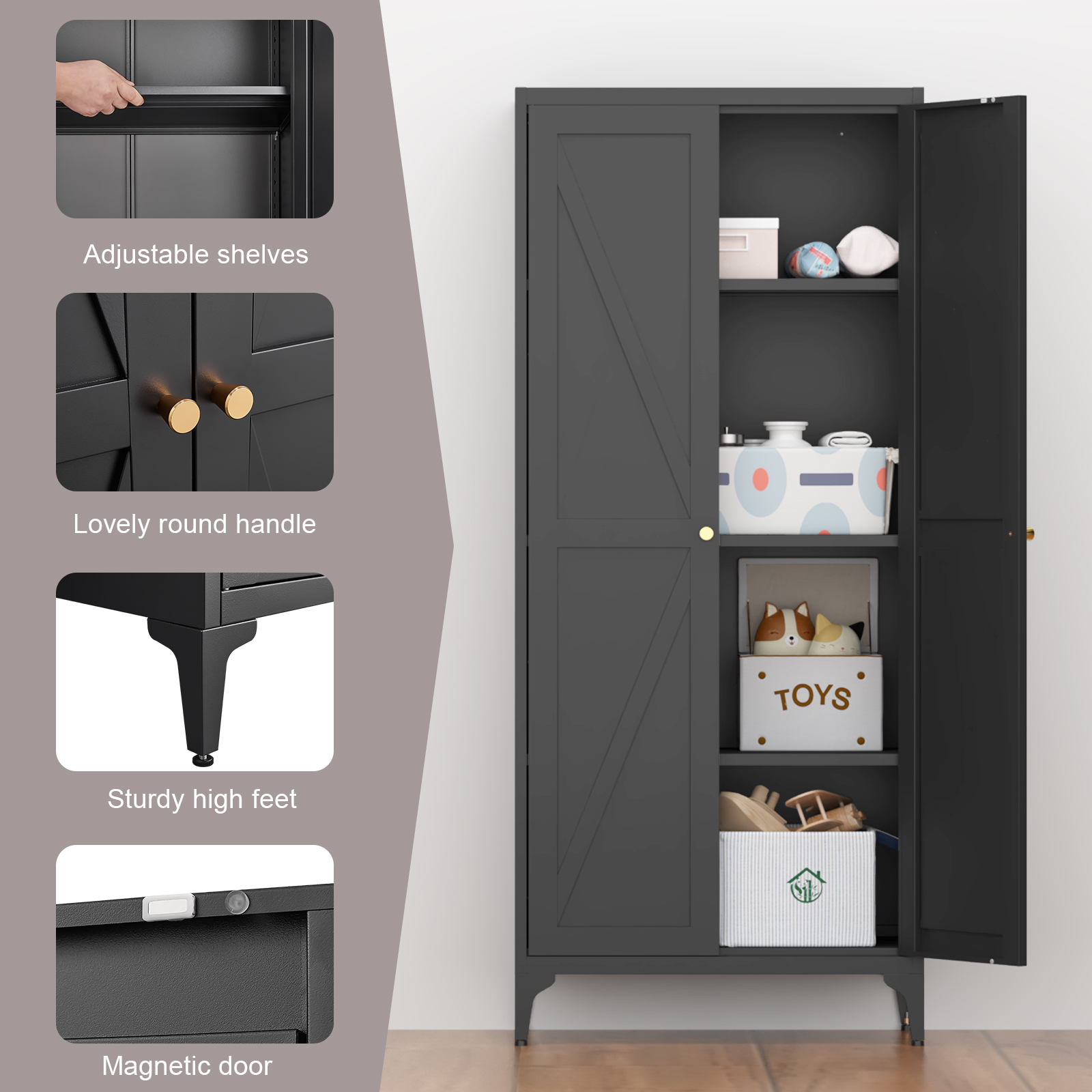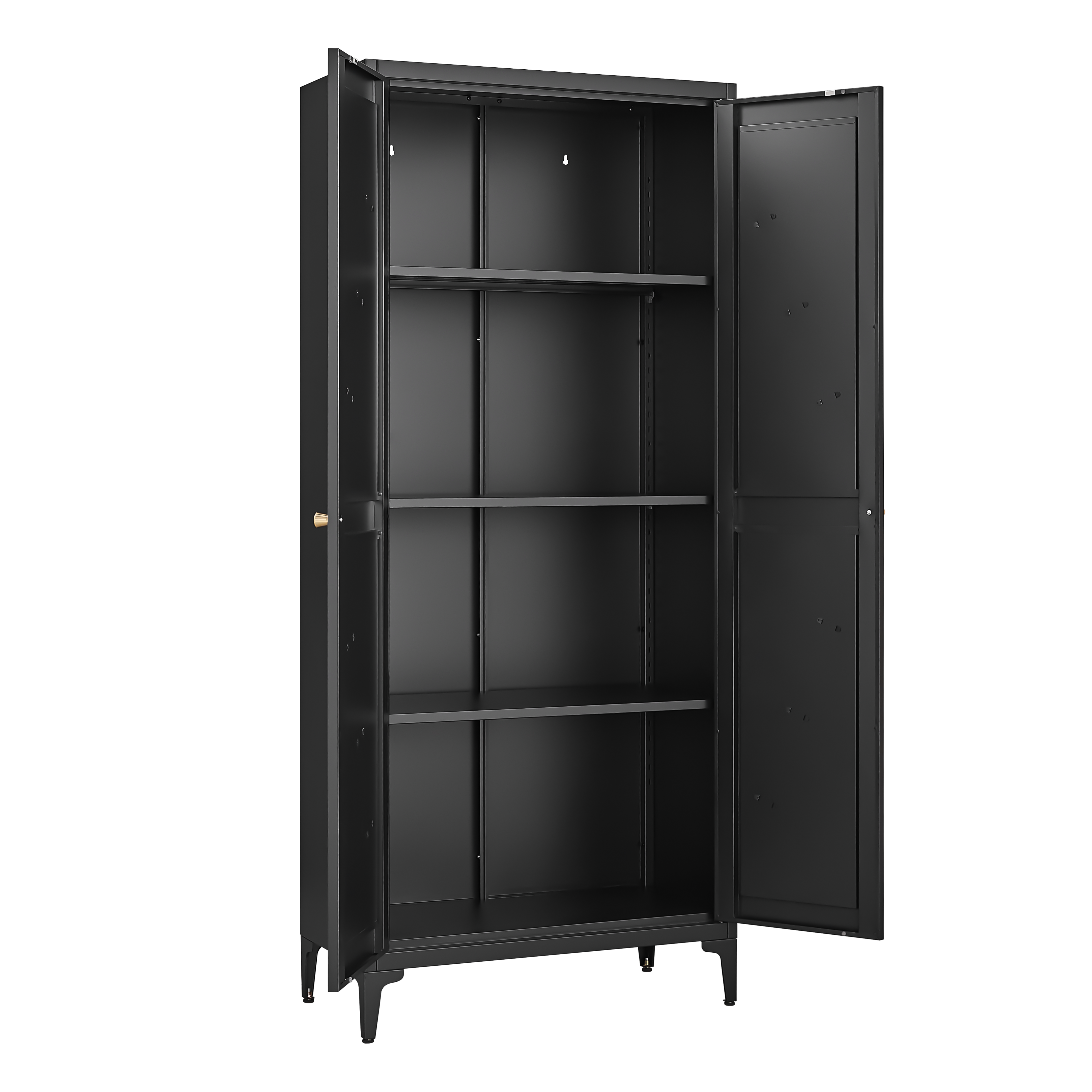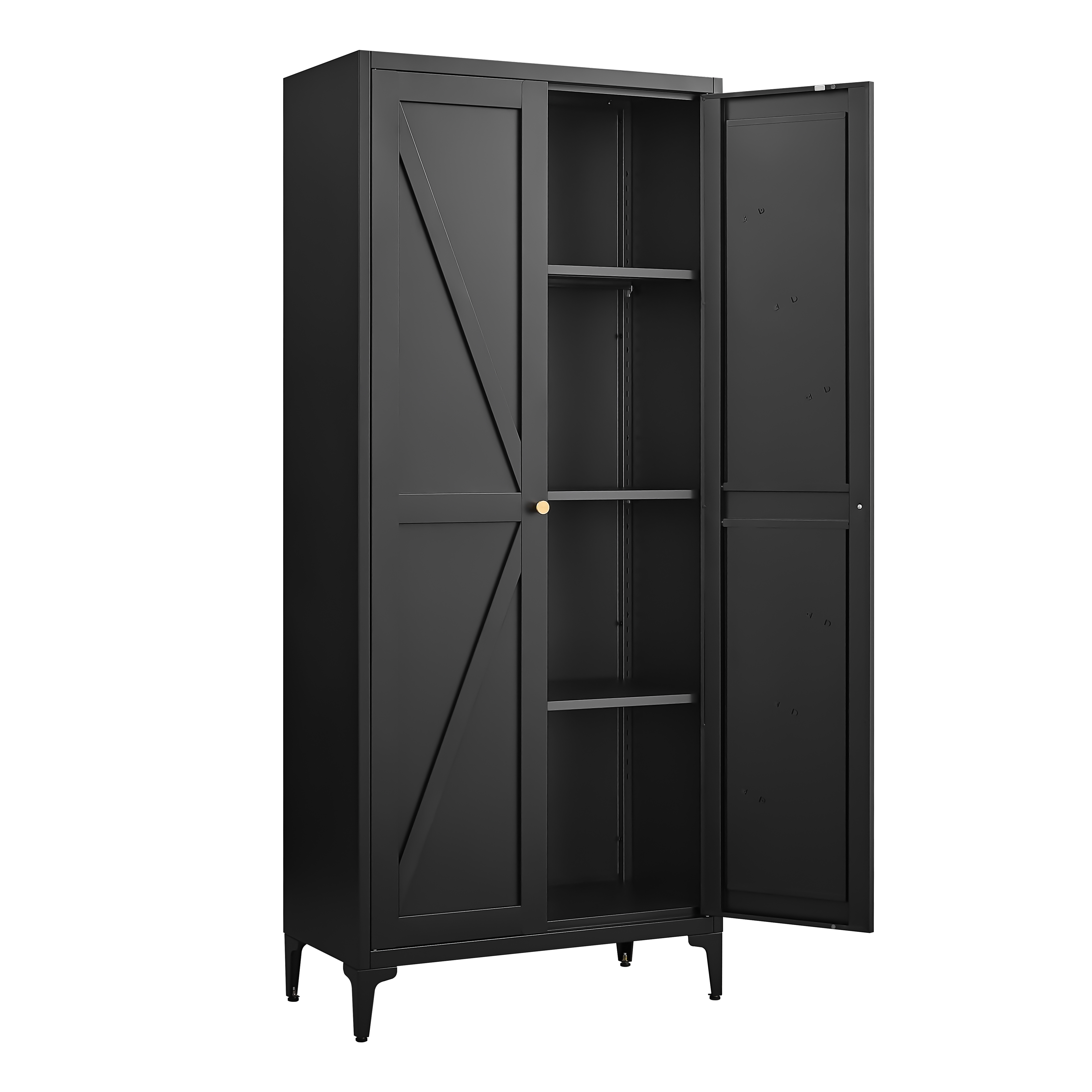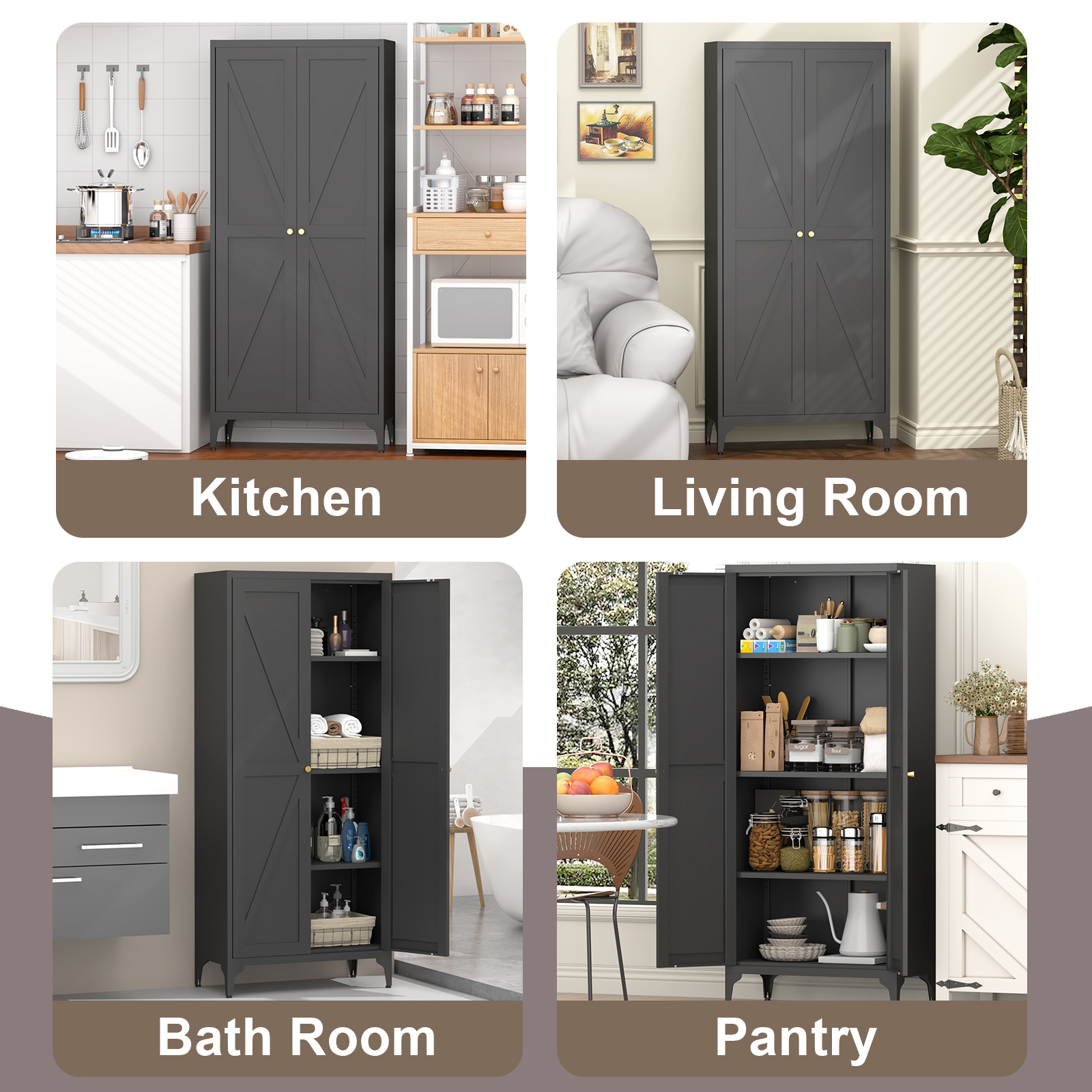 Product Name:[Metal Adjustable] 2 Doors Metal Storage Cabinet Kitchen Pantry Cabinet With Adjustable Shelves Tall Steel Cabinet Locker For Kitchen, Living Room, Dining Room And Office