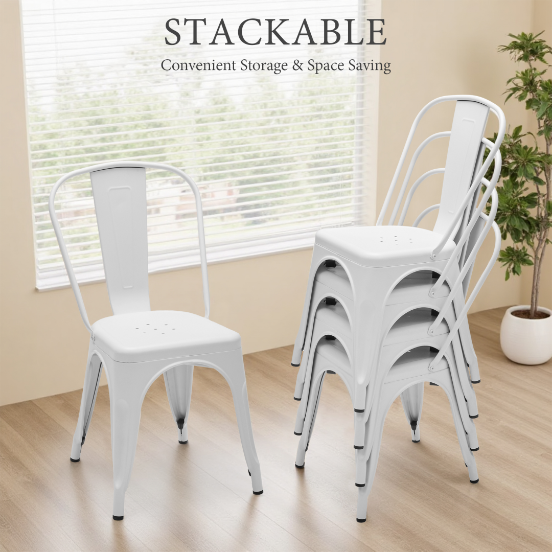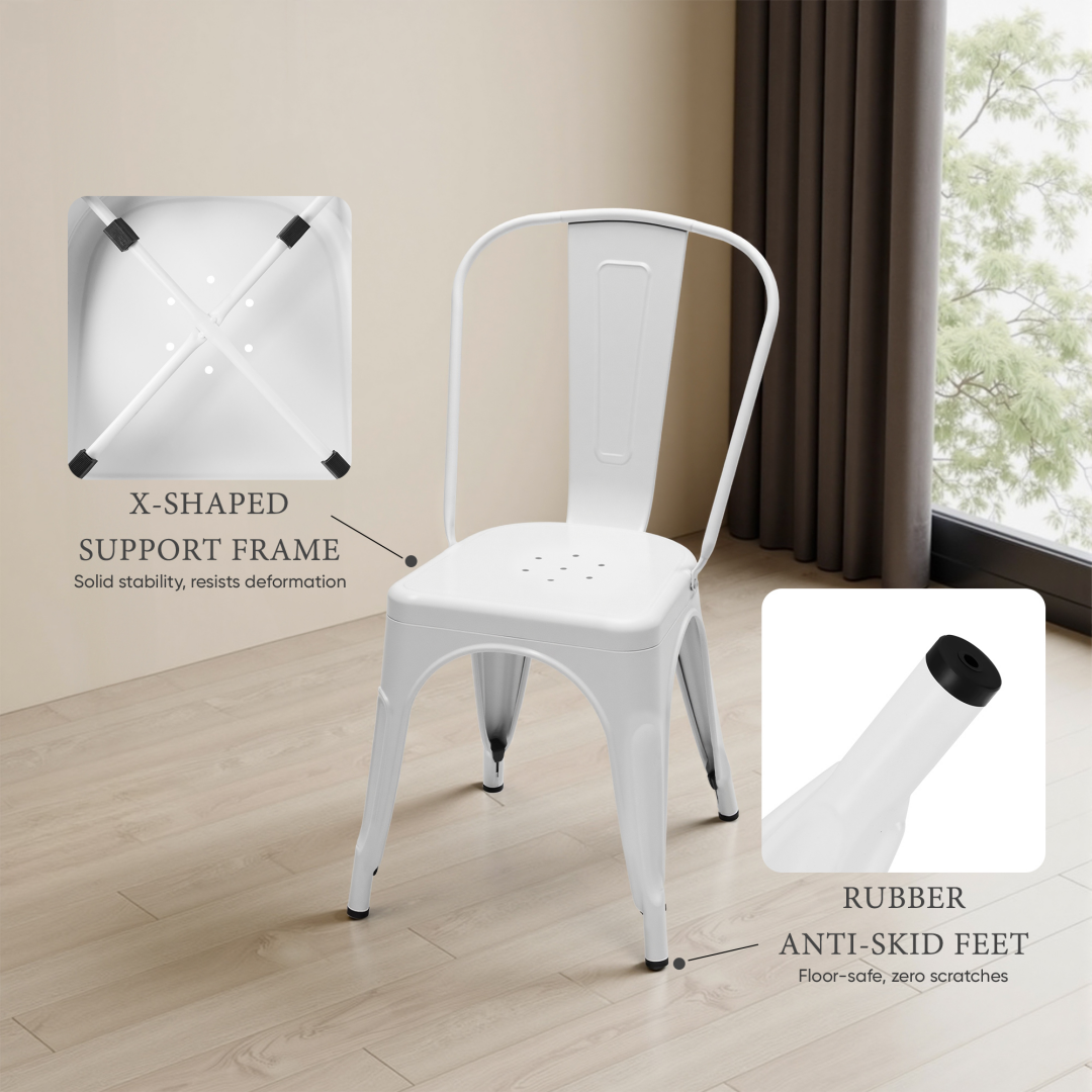 • 【Durable Metal Construction & High Weight Capacity】Crafted from premium industrial-grade metal, these metal dining chairs support up to 300LBS per chair. Their sturdy yet lightweight design ensures long-lasting use as dining room chairs for everyday indoor and outdoor seating.