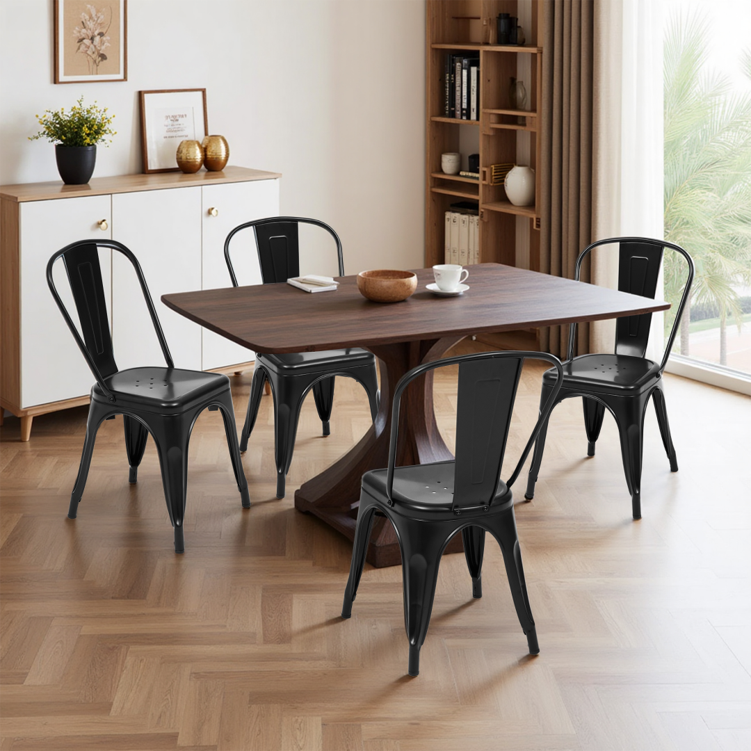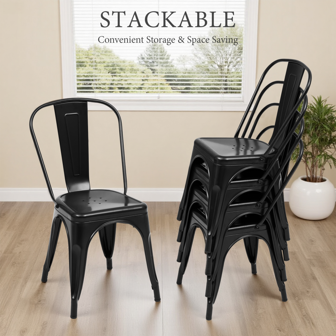 Metal Dining Chairs Set Of 4, Stackable Industrial Style Chairs For Kitchen Dining Room, 300LBS Weight Capacity